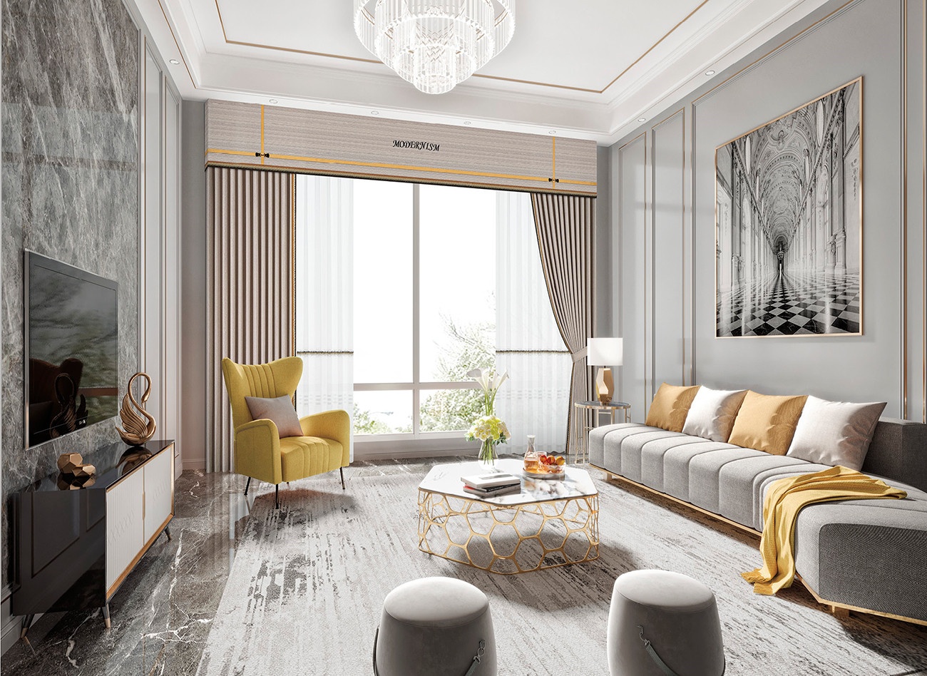 巖石灰傳達(dá)著自然的低調(diào)美感,鮮艷的螢黃色以利落的線條形式呈現(xiàn),靈動(dòng)與時(shí)尚兼具