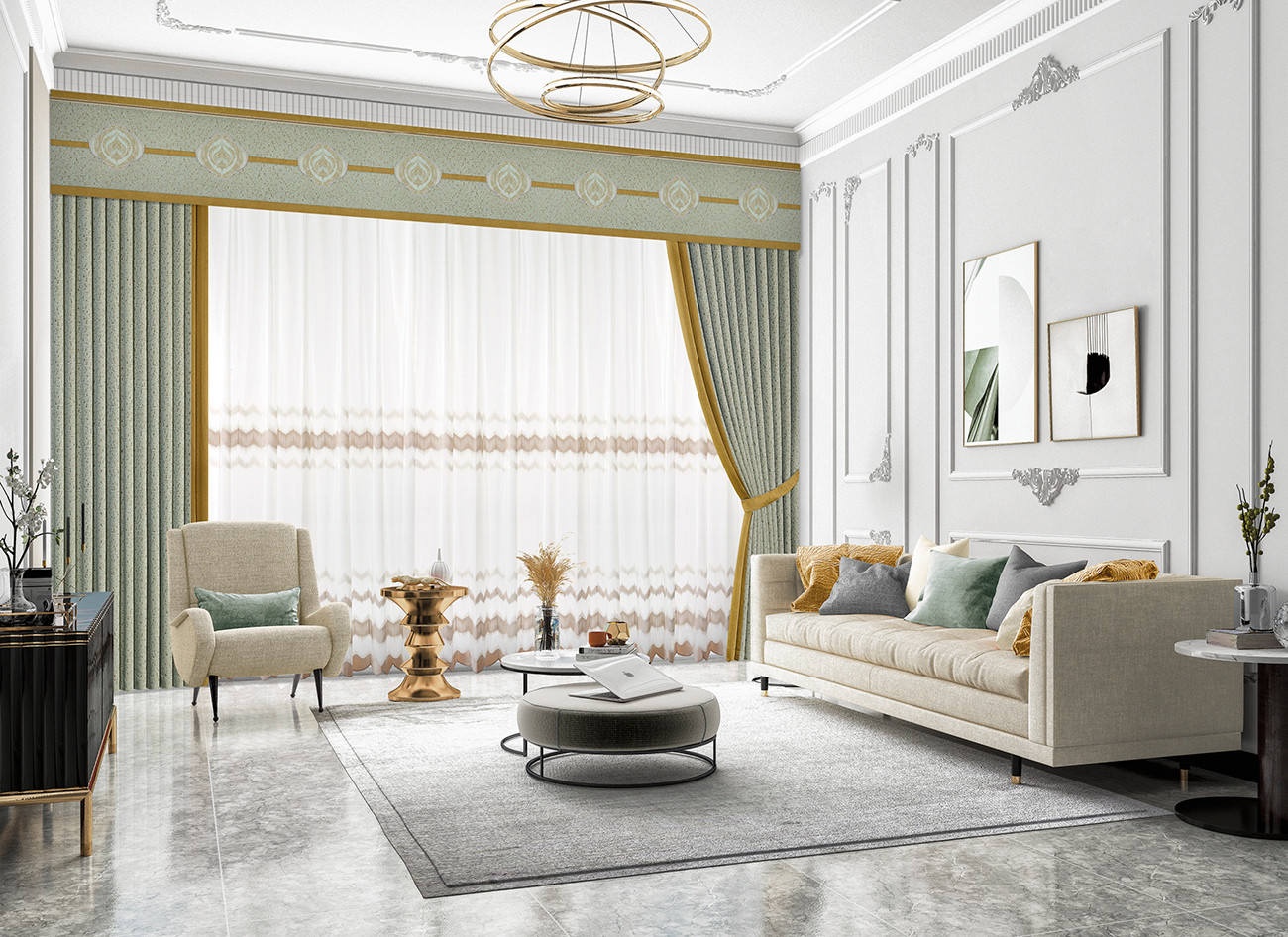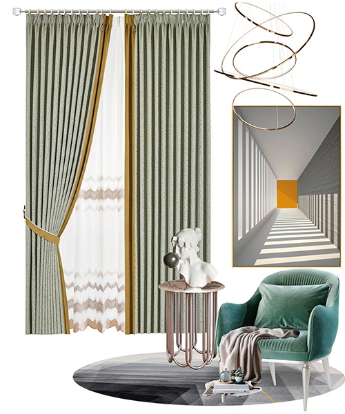 略帶灰調(diào)的綠色就像籠罩著霧氣的森林,視覺上明凈舒爽?;◢弾r般的紋理賦予面料獨(dú)特的斑駁印跡,做舊的設(shè)計帶著獨(dú)特的懷舊腔調(diào)。