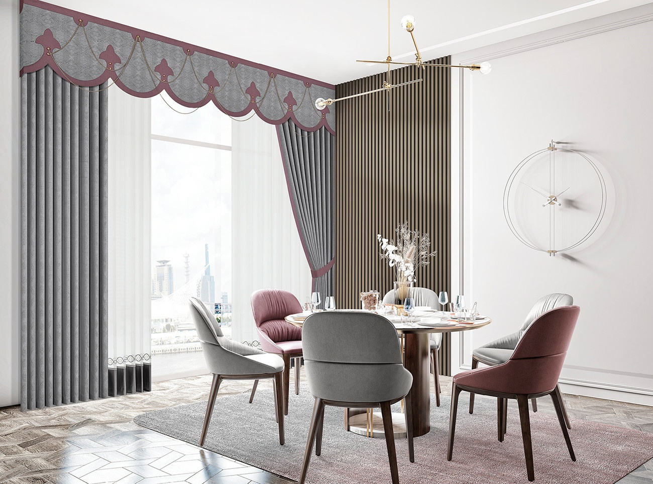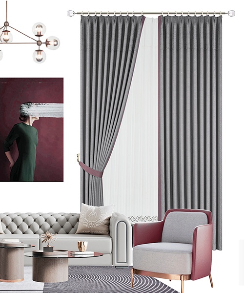 自帶紋理的莊重煙灰色仿佛是中世紀古堡中歷經(jīng)歲月的大理石,赭石色的鳶尾花圖案延續(xù)著色彩帶來的優(yōu)雅體驗,流暢的弧形簾頭訴說著古典美學的魅力。別出心裁的金色鏈飾更彰顯著歐洲皇室般的高貴氣質,優(yōu)美而不繁復,簡約而清麗。